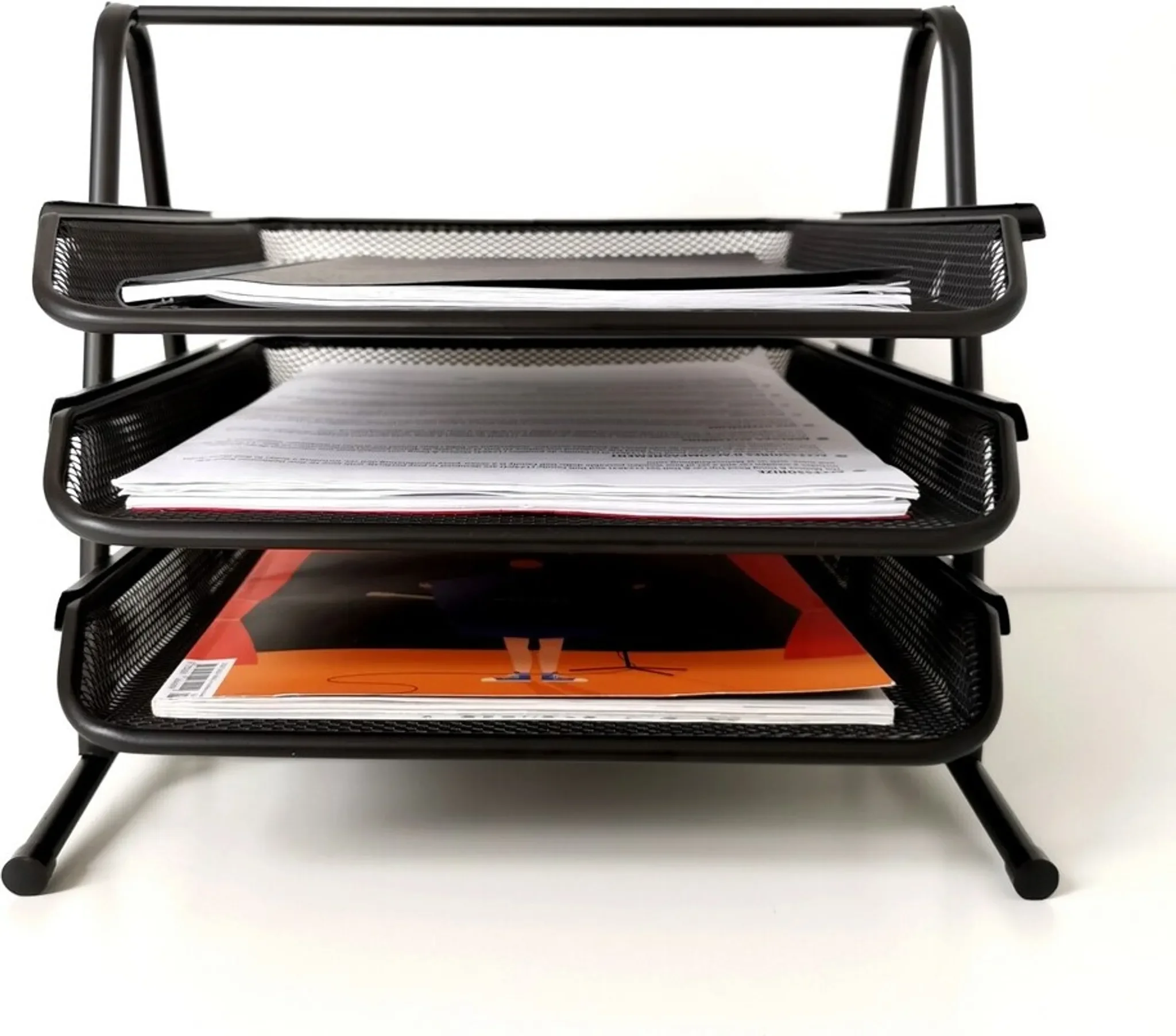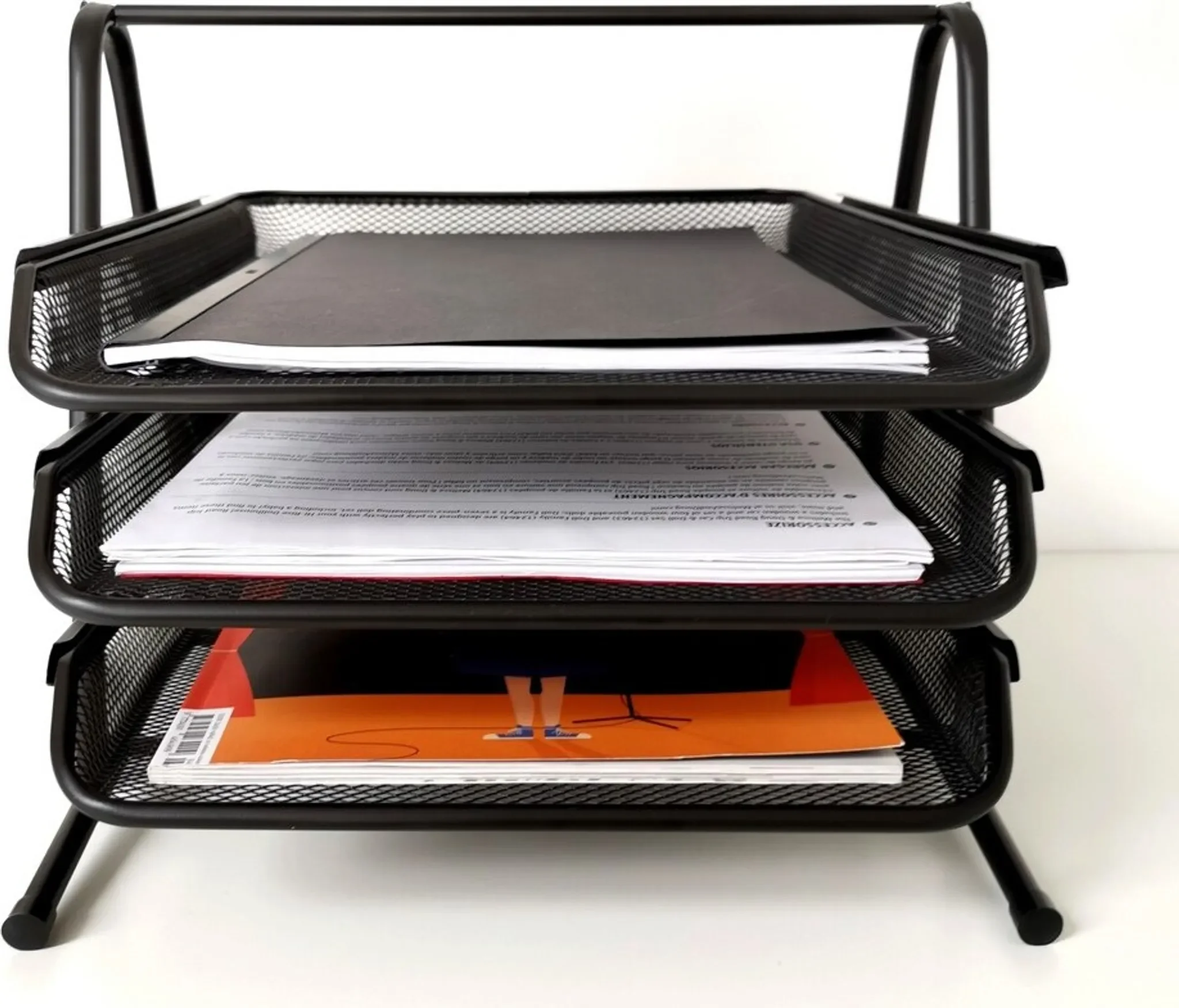 Briefablage • 3 Schubladen • A4-Format • robustes Metallgewebe • schwarz