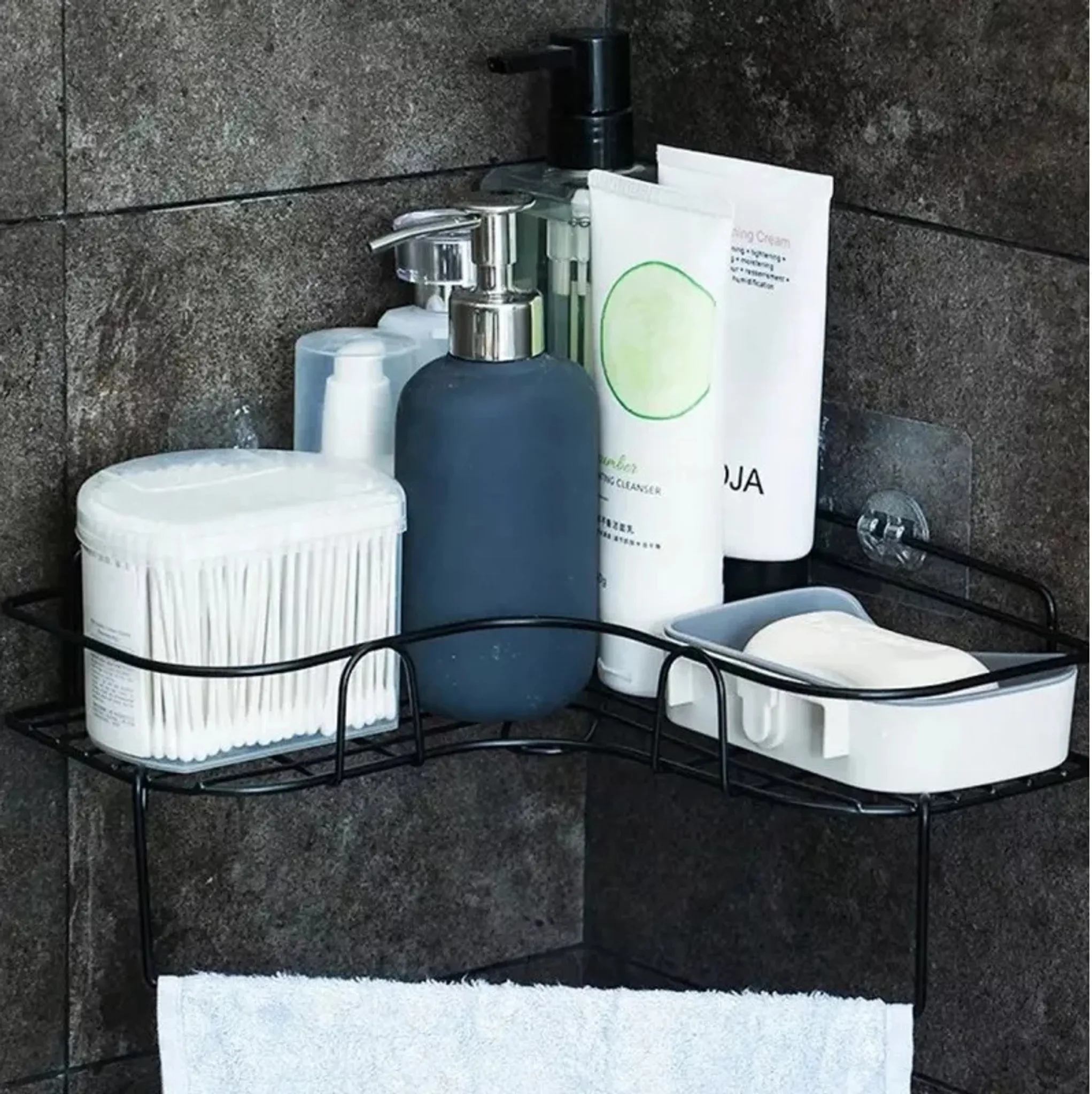 Highlights: Platzsparend für Ecken • Ohne Bohren • Modernes Design • Vielseitig einsetzbar • Inkl. Saugnäpfe.