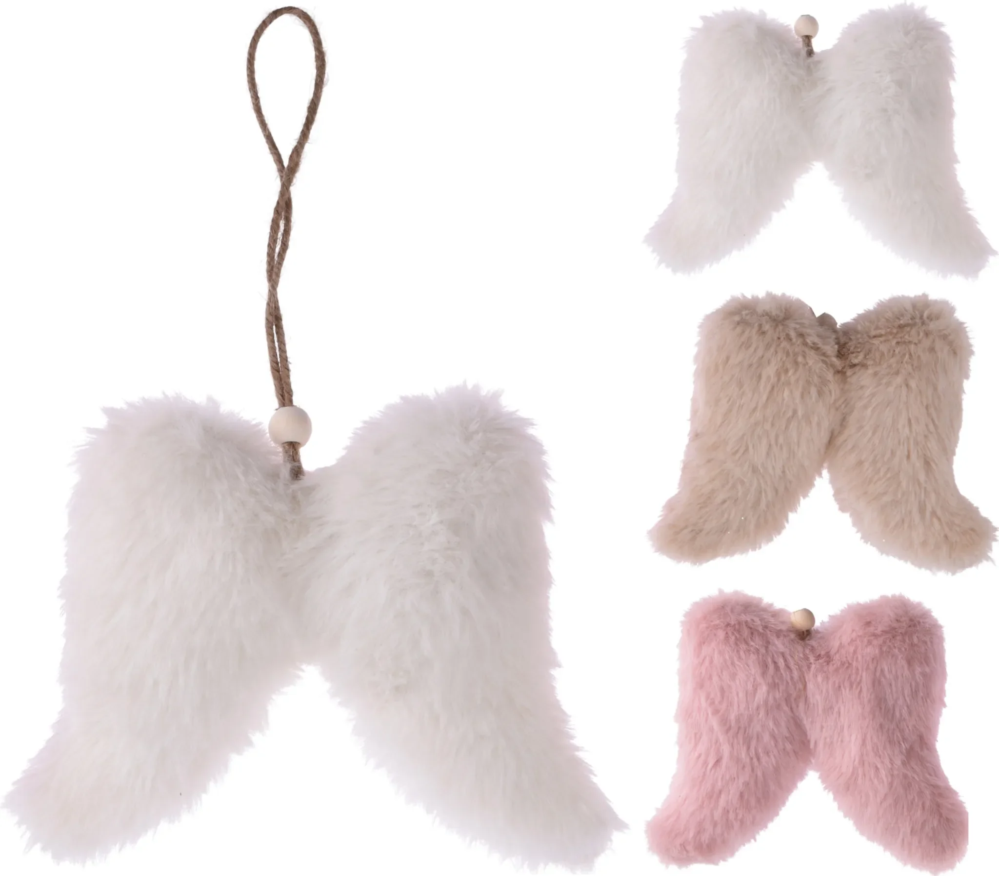 Highlights: Flügel-Design aus Kunstfell • Wiederverwendbar • Juteschnur zum Aufhängen • Verleiht Arrangements Eleganz & Wintercharme.