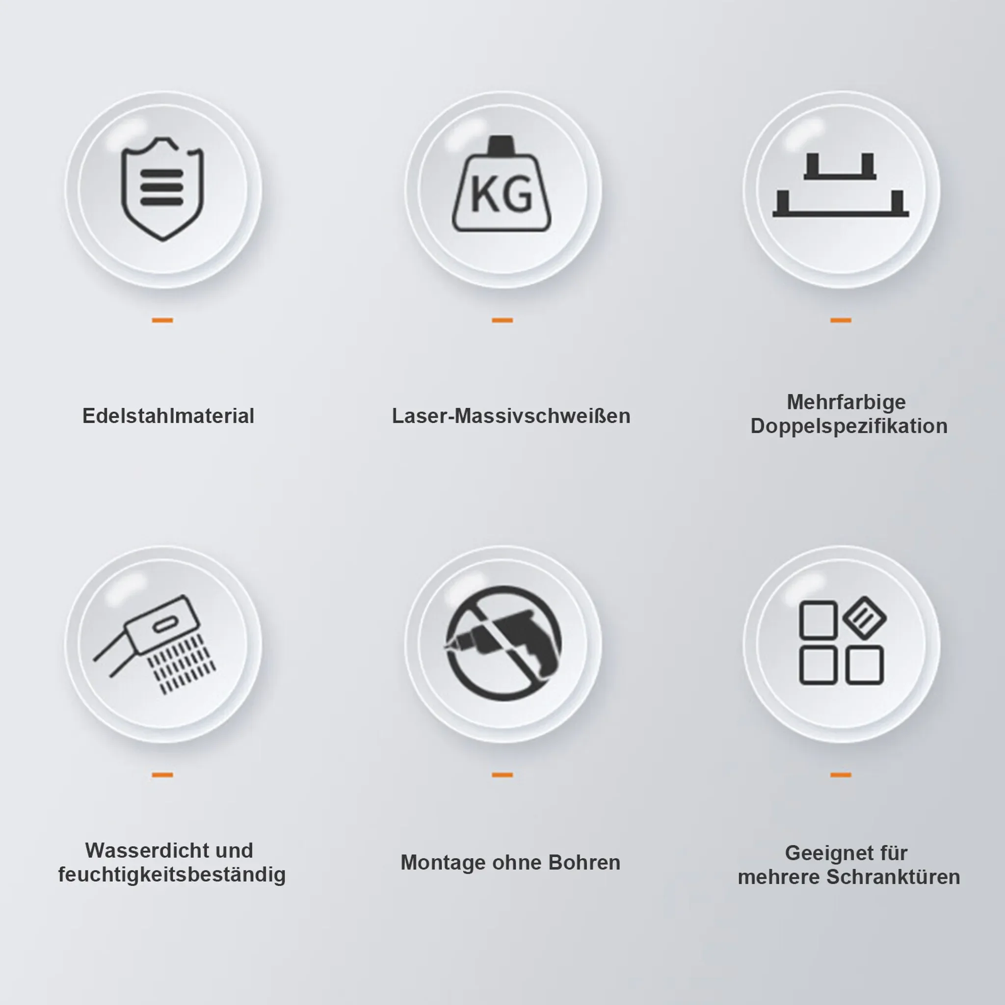 | Eigenschaften | Korrosionsbeständig, pflegeleicht, stabil, platzsparend |