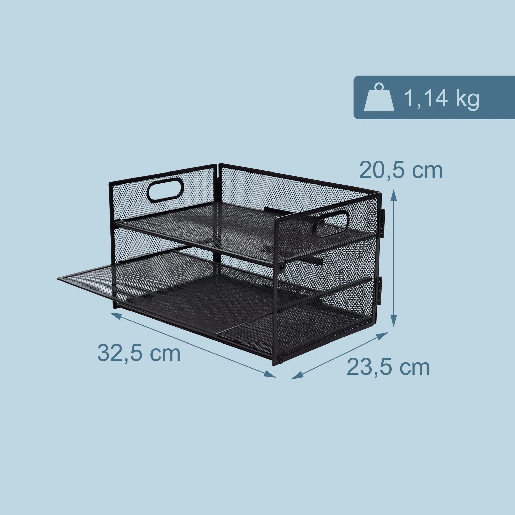 Highlights: Übersichtliche Ablage für wichtige Dokumente, herausziehbare Ebenen für schnellen Zugriff, stabile Gitterstruktur, vielseitig einsetzbar und leicht transportierbar.